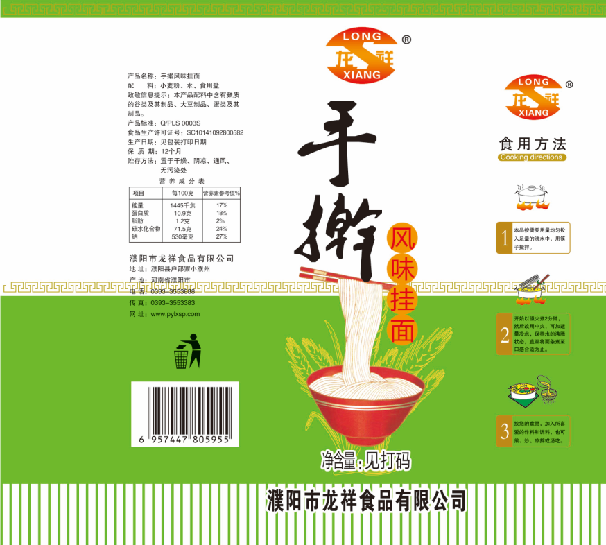 濮陽市龍祥食品有限公司位于河南省濮陽縣戶部寨鎮(zhèn)小濮州,始建于1994年,前期投資200萬元,經(jīng)過幾年的努力,大力開發(fā)市場,由于市場的需求量急劇上升,出現(xiàn)供不應(yīng)求,于2004年擴建,建成一座新型的現(xiàn)代化面粉加工企業(yè),并擁有全國先進(jìn)全自動生產(chǎn)設(shè)備一套,產(chǎn)量由以前的100噸/天,提高到現(xiàn)在400噸/天。 2012年再次擴大規(guī)模申請為濮陽市龍祥食品有限公司,注冊資金500萬元。2012年又投資800萬元新建掛面生產(chǎn)線一條,日產(chǎn)掛面50噸。龍祥食品有限公司現(xiàn)有職工120余人,總工程師1人,專業(yè)技術(shù)人員10人,經(jīng)濟師1人,會計師1人,銷售人員2人,優(yōu)秀專業(yè)人員20余人。 龍祥公司自創(chuàng)建以來,社會效益十分可觀。公司一直以“今天的質(zhì)量,明天的市場”為信念,“一切為了客戶需求,竭誠追求完美品質(zhì)”為企業(yè)宗旨,走專業(yè)化經(jīng)營和職業(yè)化管理的路子。